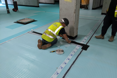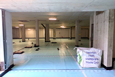 CCL recommended the installation of a Newton CDM water management system to comprehensively waterproof the extensive basement. First, they employed the 8mm Newton 508 membrane to the concrete retaining walls of the basement. The 50mm thick Fibran XPS 500-C insulation was then installed beneath more 508 membrane across the entire concrete slab. Additionally, Basedrain drainage channel was installed around perimeter, including inspection ports to provide a fully maintainable system.