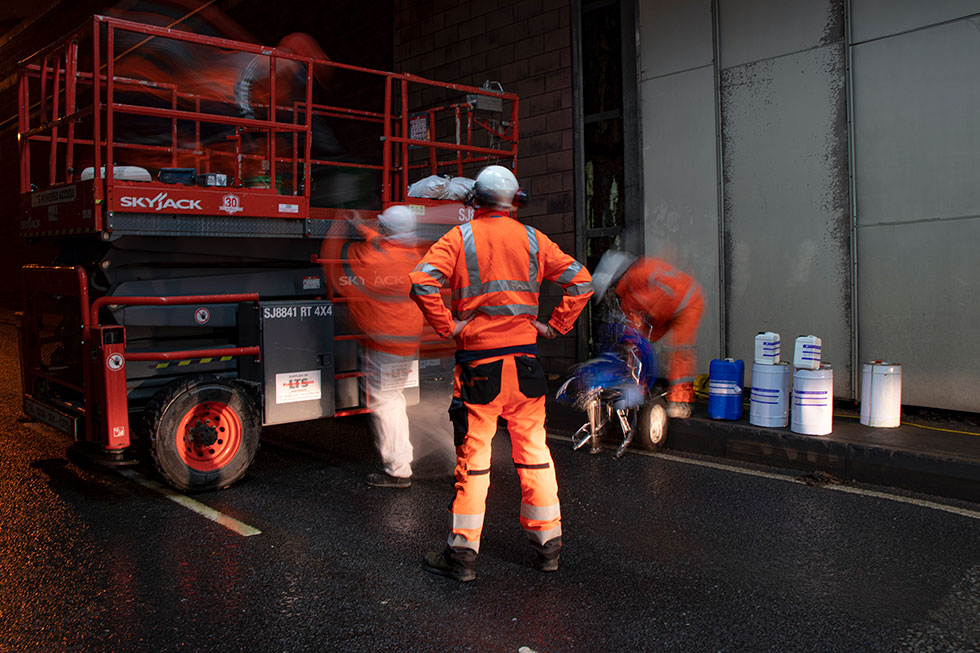 As the water ingress was located near the roof of the tunnel, it needed to close for the repairs to be carried out. This was only possible between 11pm and 4am to minimise disruption to the roads of London.