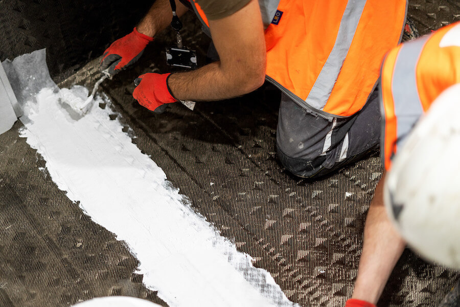Specialist fireproof sealant is used to seal the membrane edges